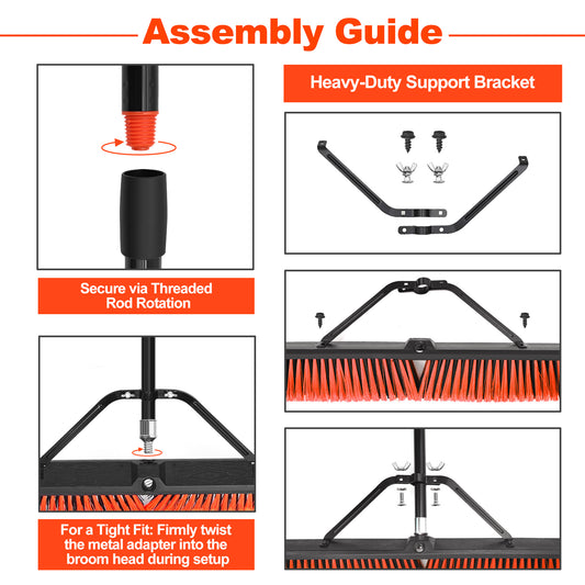 JEHONN 15.7" Wide Push Broom Outdoor Heavy Duty (Orange)