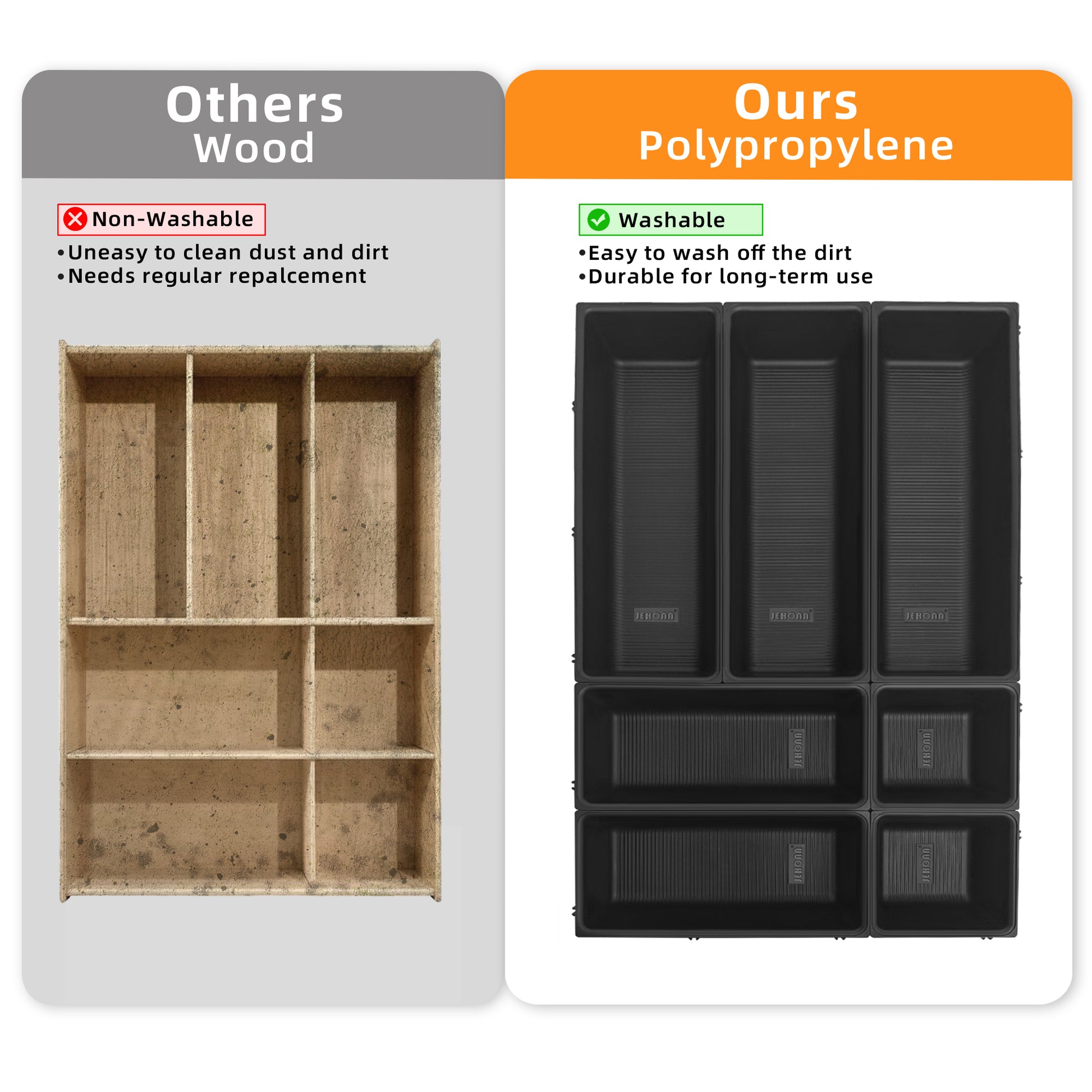 - Finding Your Flatware is a Breeze: Tired of kitchen clutter? Looking for a versatile utensil drawer organizer? JEHONN kitchen organizer is your best solution. It can hold all types of cutlery, making it easy to find what you need at the first glance