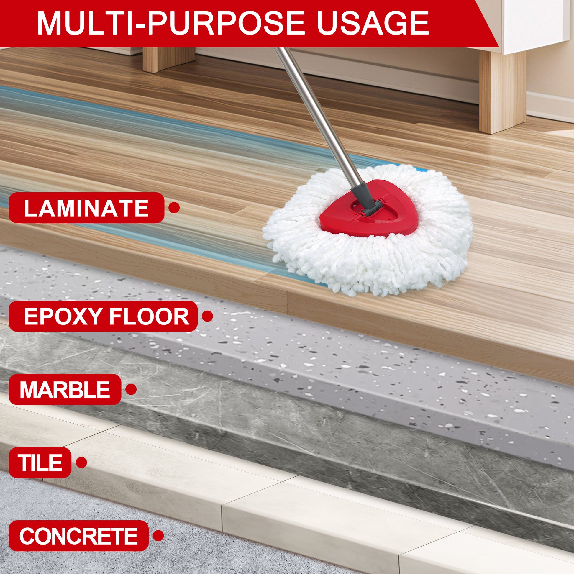 - Durable Replacement Mop Heads: Package includes 2 spin mop replacement heads. These mop refills are made of high-quality microfiber, which makes it super absorbent. It excels in mopping tile, concrete, marble, glass, wall, deck, hardwood floor and so on