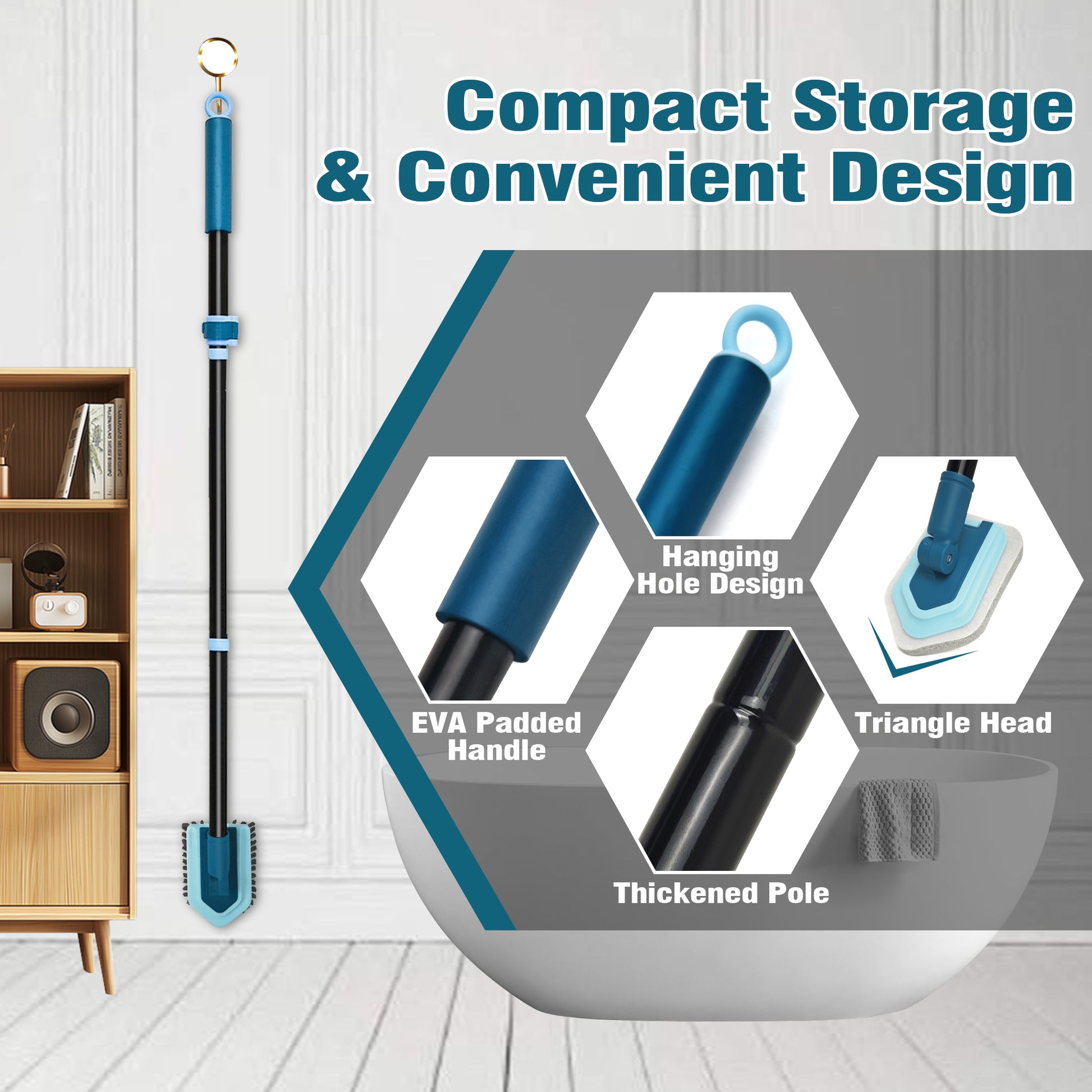 JEHONN Tub Tile Scrubber Brush with Long Handle (Blue)