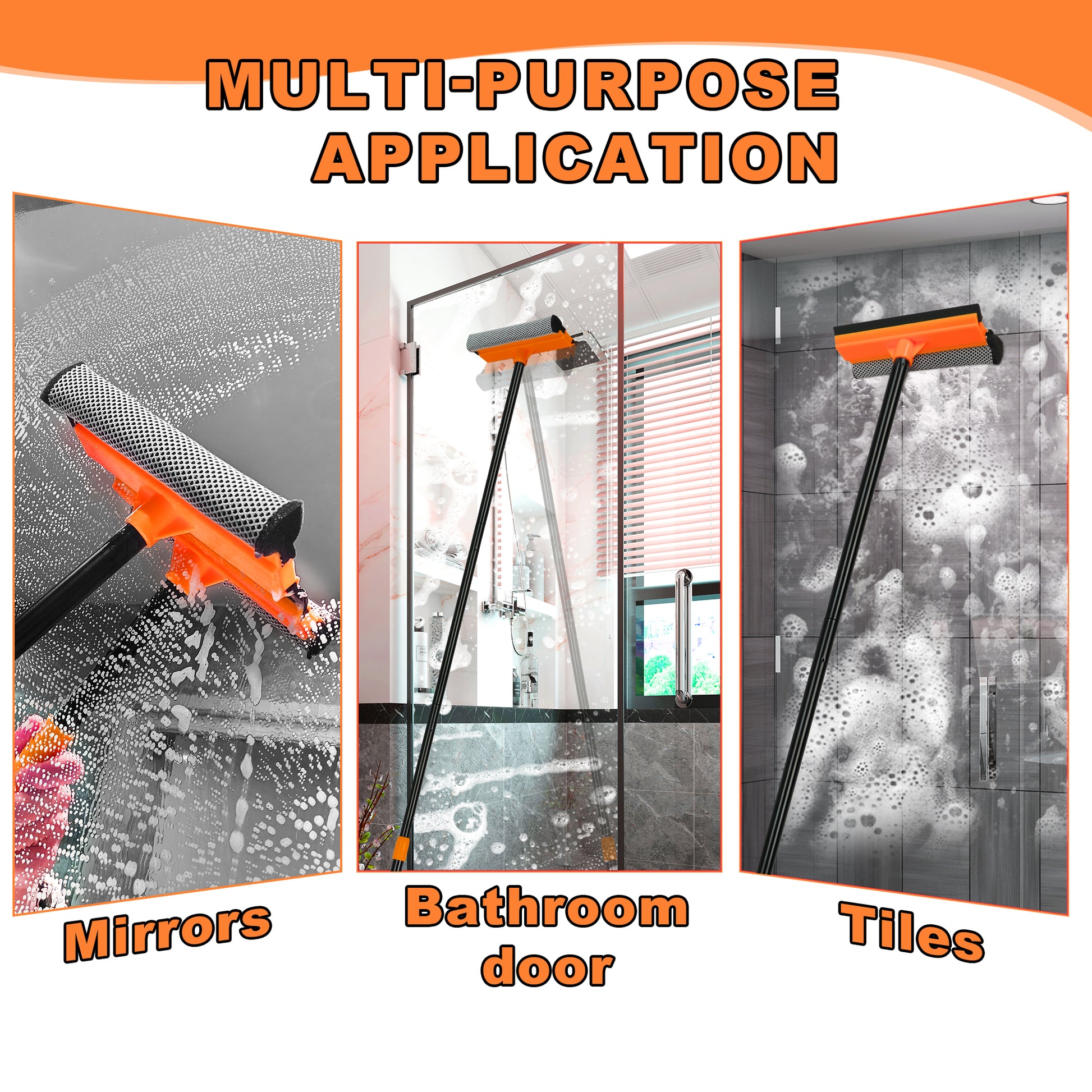- Versatile for Indoor & Outdoor Use: The window squeegee extendable tackles stubborn water spots on shower doors, bird droppings on car windshields, or dust on skylights. Ideal for homes, offices, RVs, and professional cleaners