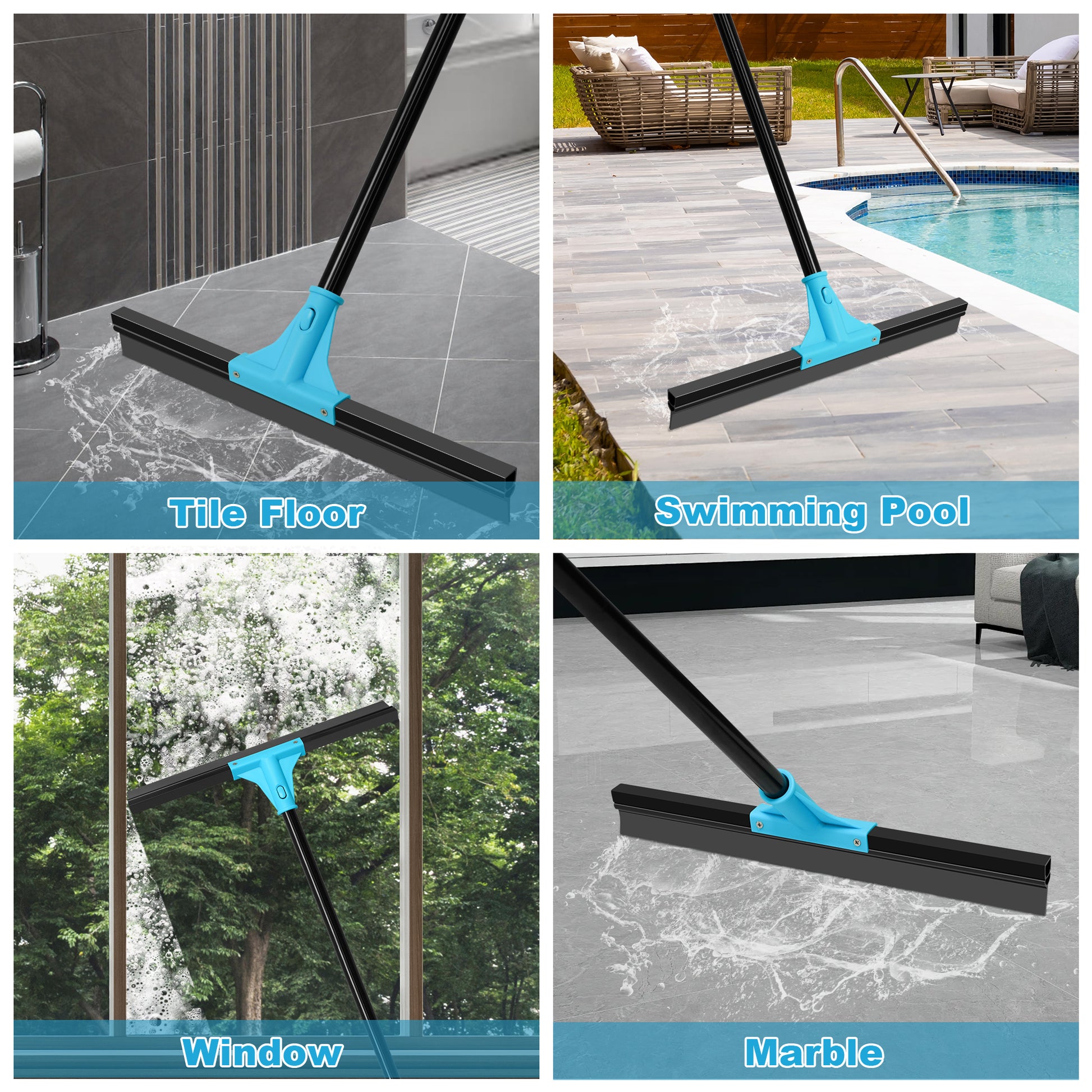- Versatile Use: This squeegee broom for floor works well on concrete, tiles, glass, laminate, epoxy floor, window, and more, making it ideal for bathrooms, kitchens, garages, and even outdoor decks. Its durable construction ensures long-lasting performance