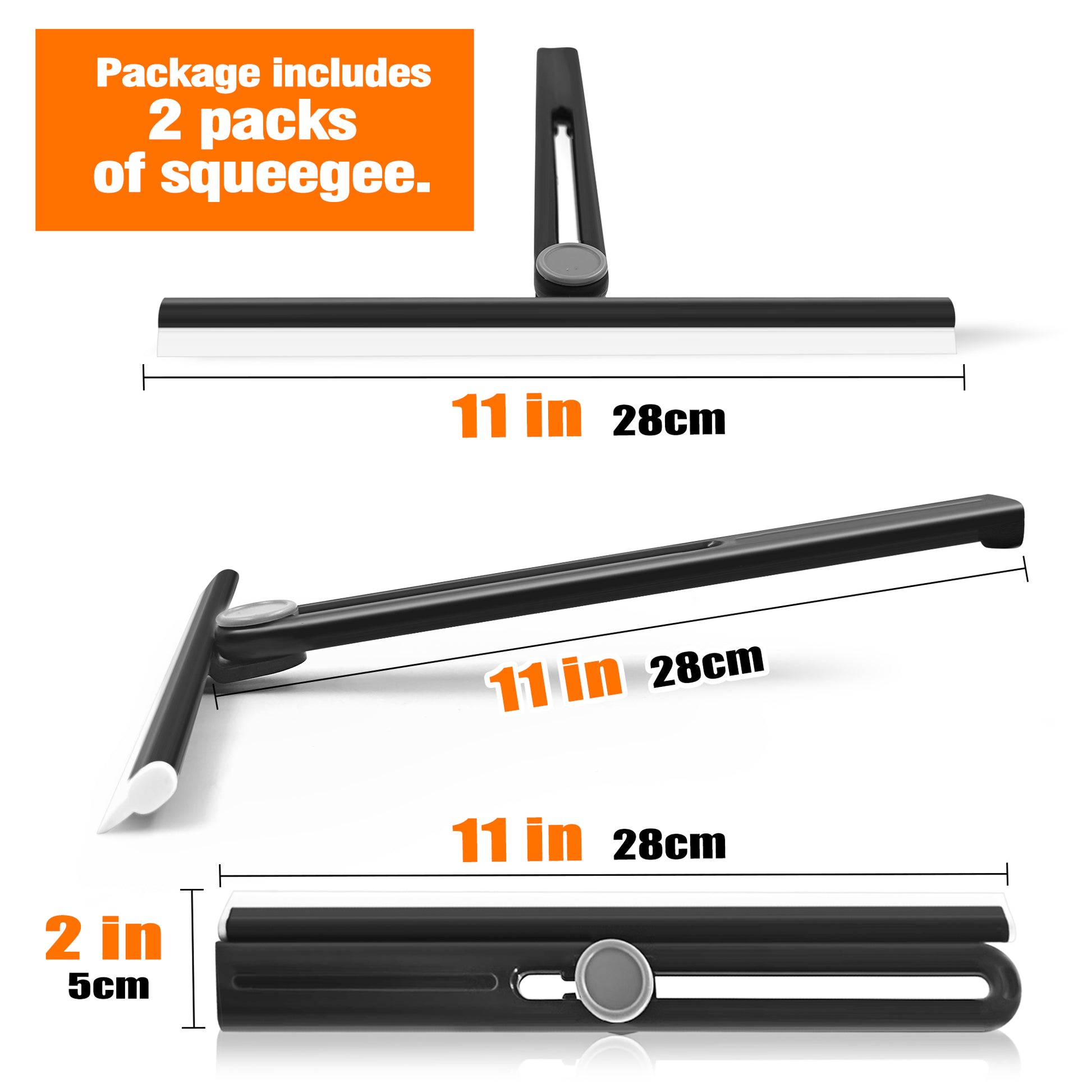 - All-Purpose Squeegee: Package includes 2 packs of shower door squeegees. The black squeegee has a 360° rotating head, which can turn to get into awkward corners or to your preferred angle. This household squeegee makes it much easier to clean edges and corners.