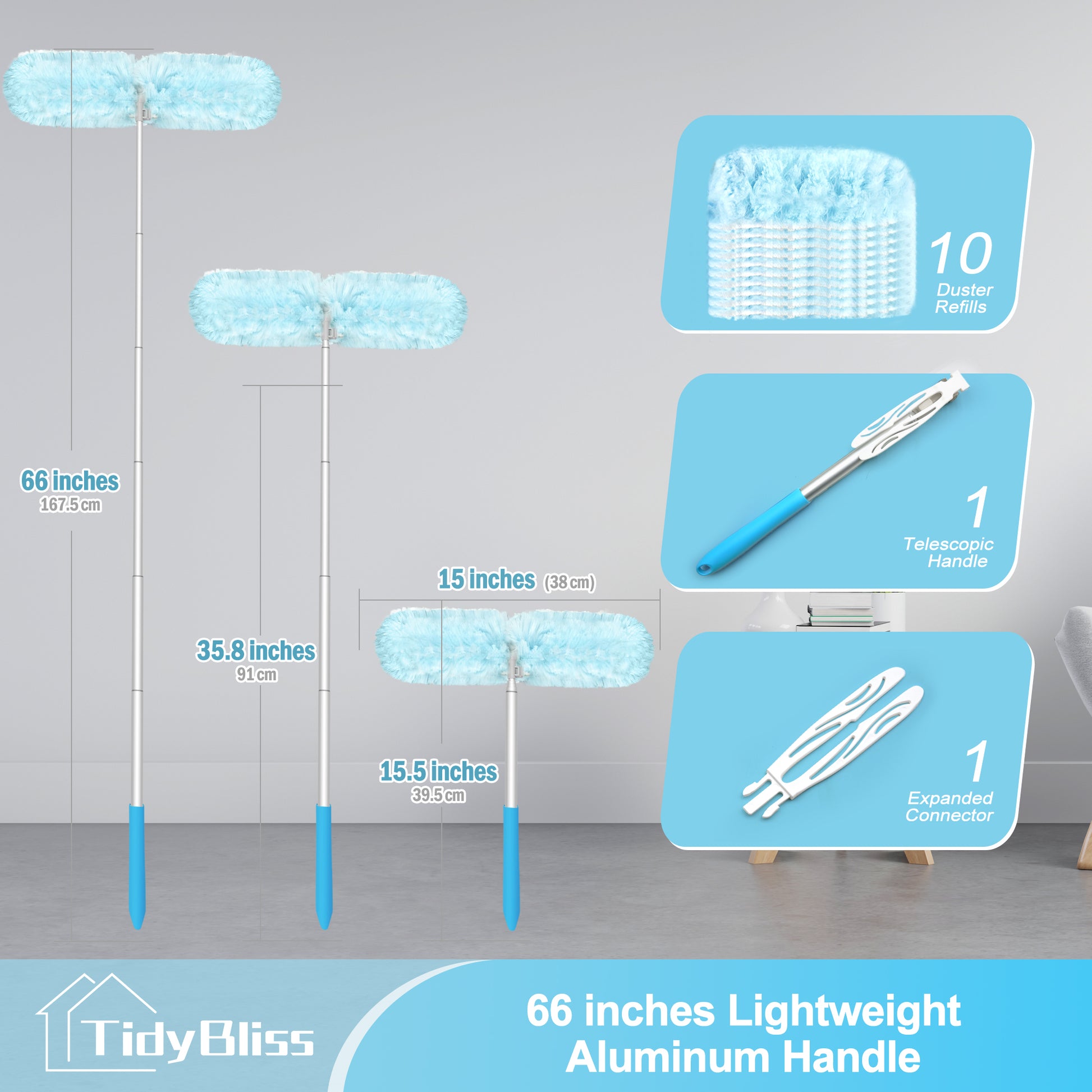 TidyBliss Dusters for Cleaning with Extension Pole 66 inches and 10 Refills for Swiiffer