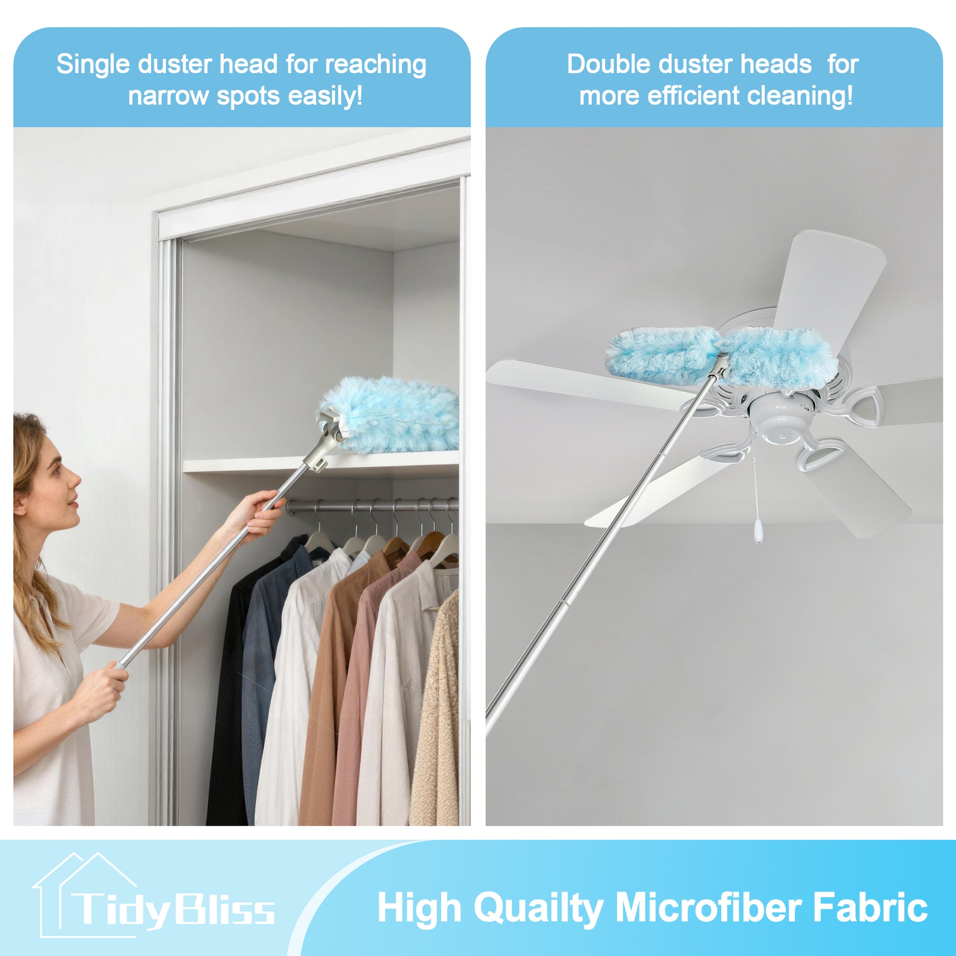 - Dual-Head Design for Maximum Coverage: Our extendable duster features an innovative double-head design that allows you to tackle larger areas in half the time, Ideal for quickly dusting shelves, furniture, and flat surfaces without missing a spot