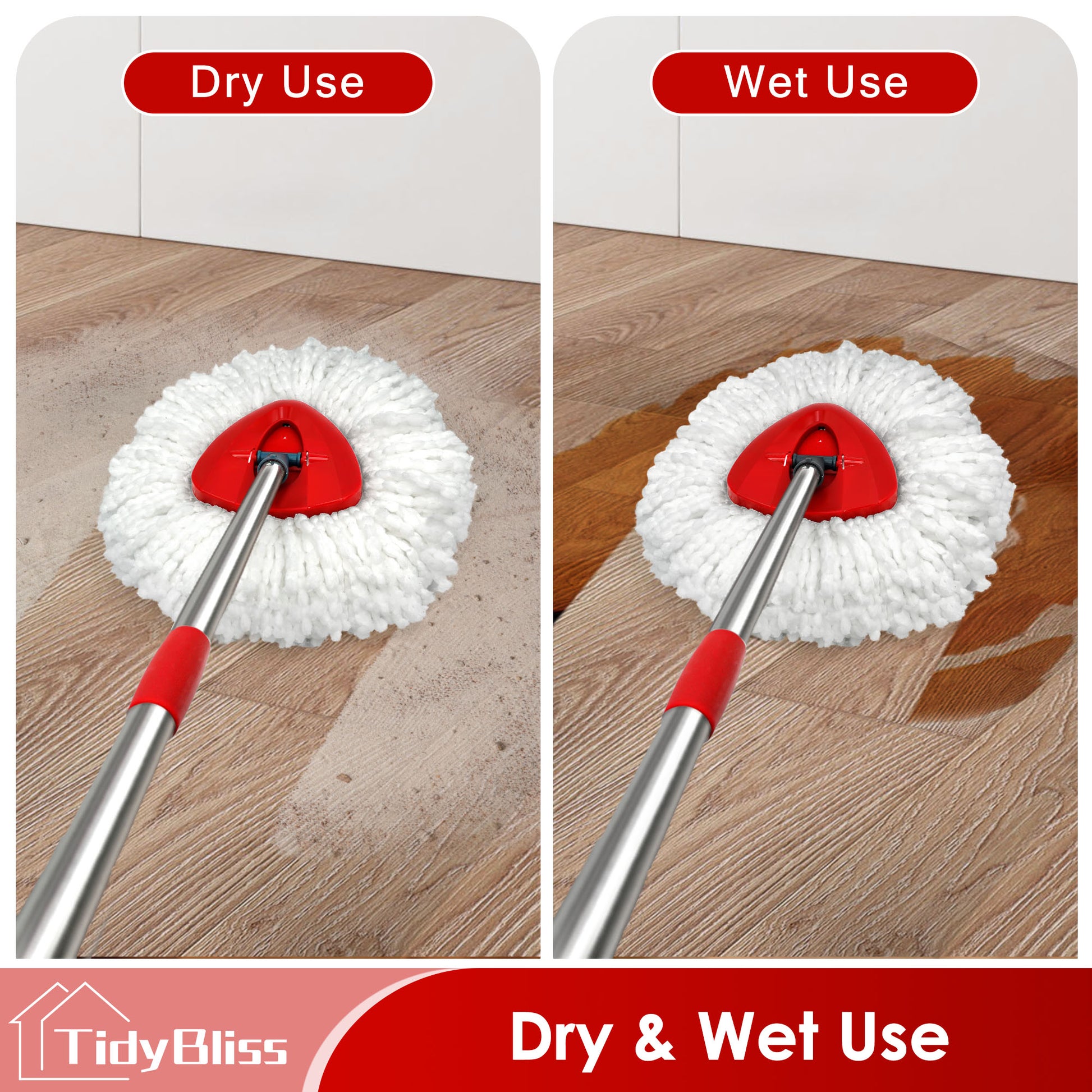 - Spin Mop Accessories for Both Dry and Wet Use: The microfiber mop heads serve a dual purpose—they can be used as dry mops to gather hair, dirt, and pet fur off floors, and as wet mops to absorb surplus water