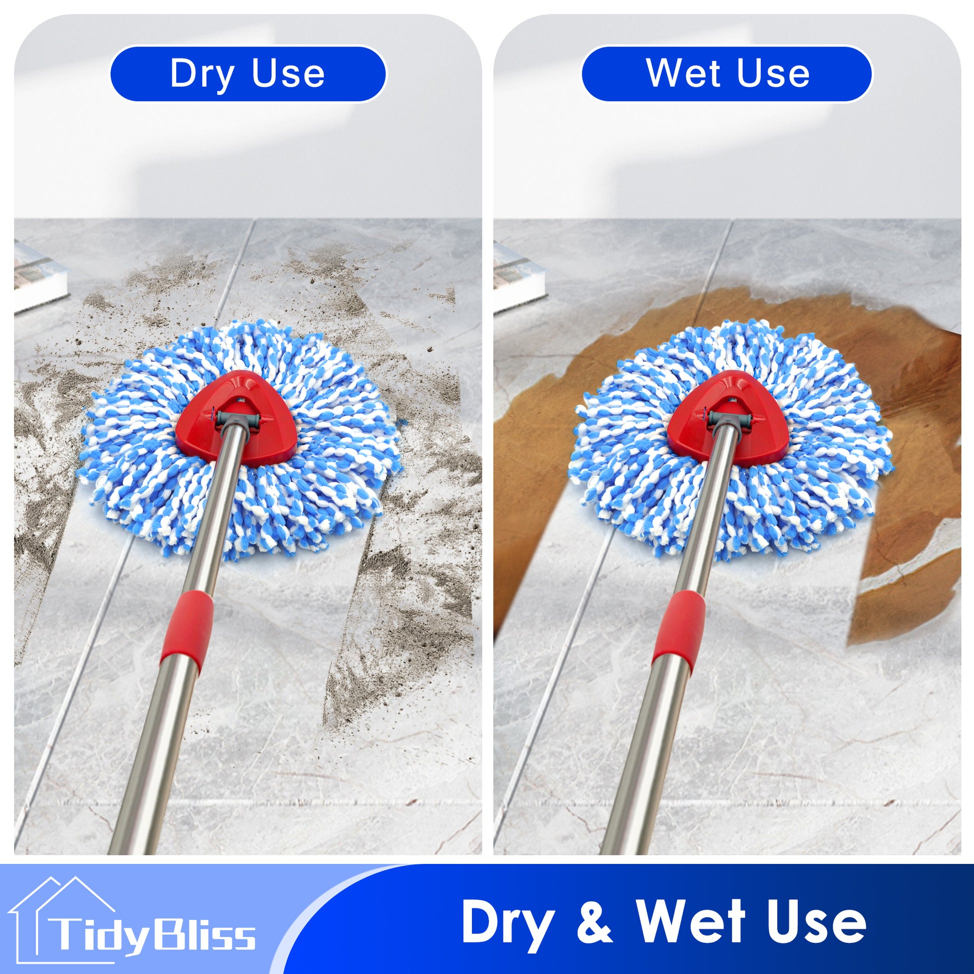 - Spin Mop Accessories for Both Dry and Wet Use: The spin mop heads serve a dual purpose—they can be used as dry mops to gather hair, dirt, and pet fur off floors, and as wet mops to absorb surplus water