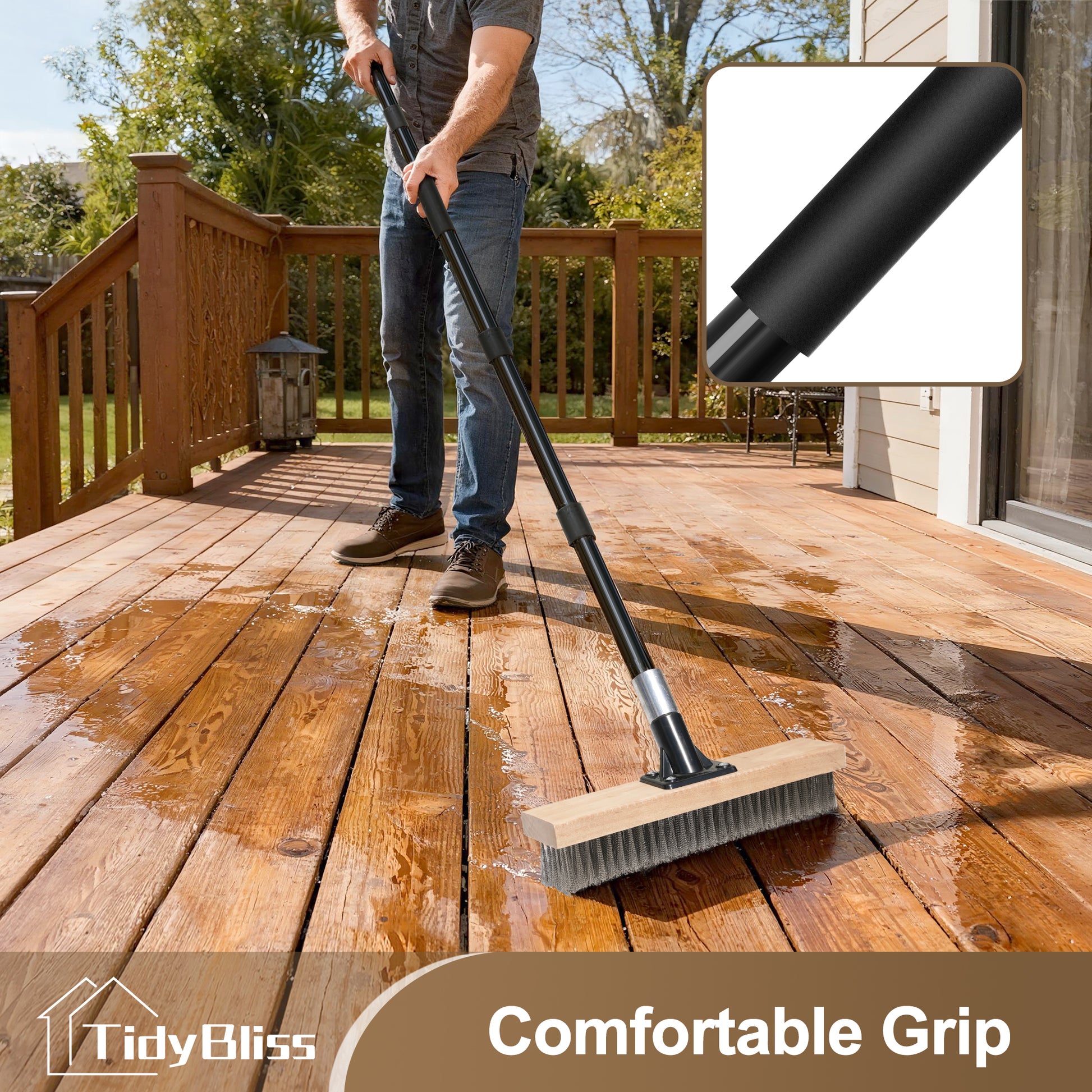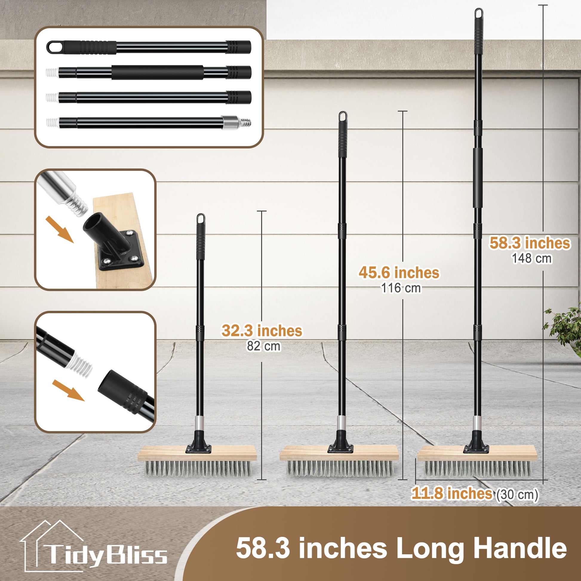 - Ergonomic 58.3" Handle for Effortlessly Cleaning: The 58.3 inches long handle floor scrub brush allows you standing upright for comfortably sweeping or scrubbing. Hard bristle broom head and the handles are in threaded connection, which is uneasy to loosen